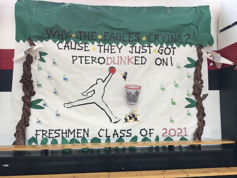 The annual tradition of the Mural Competition is underway as the grades 7-12 have created their themed murals for display. Each grade level has created a mural based on the Jurassic Park theme.
