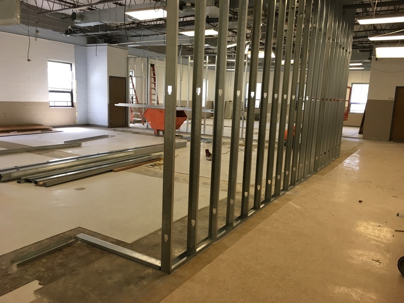 new Kindergarten room being renovated. The old wall was removed for increased space.